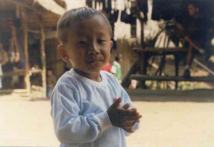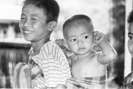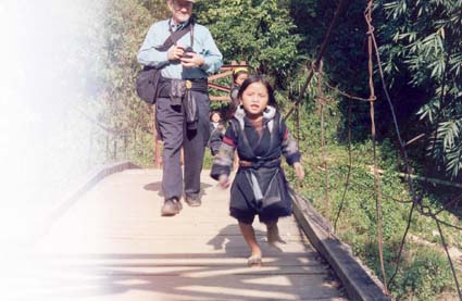 Petites filles Hmong courant sous le regard intrigué d'un